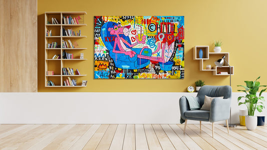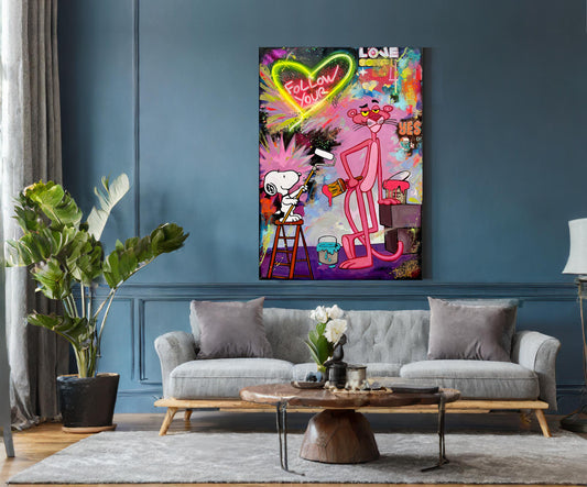 Snoopy & Pink Panther Follow Your Love Abstract Pop Art Oil Painting - Rub-5