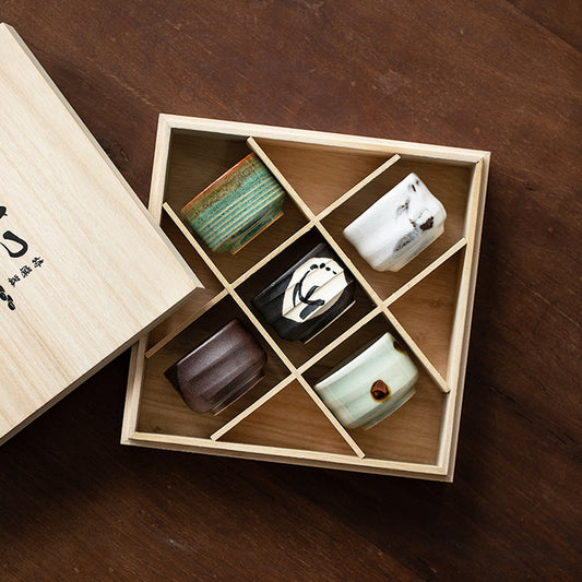 Japanese Vintage Hand Made Ceramic Cup To Taste Sake Set of 5