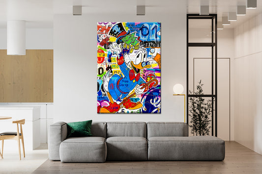 Scrooge McDuck Party Fun Pop Art Oil Painting, McDuck Street Graffiti Pop Art Paint, Banksy Style McDuck Oil paint - Artsber 1