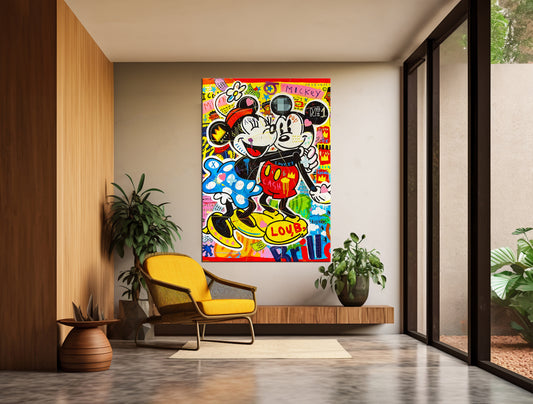 Mickey and Minnie Mouse Lovers Pop Art Oil Painting, Couple Wall Art Painting Gift - Pop 025
